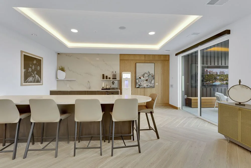 A carefully curated material palette plays a key role in achieving this atmosphere, with natural finishes, soft lighting, and strategic contrasts enhancing both comfort and visual interest. The design balances modern aesthetics with a welcoming feel, creating a space that feels both contemporary and timeless.